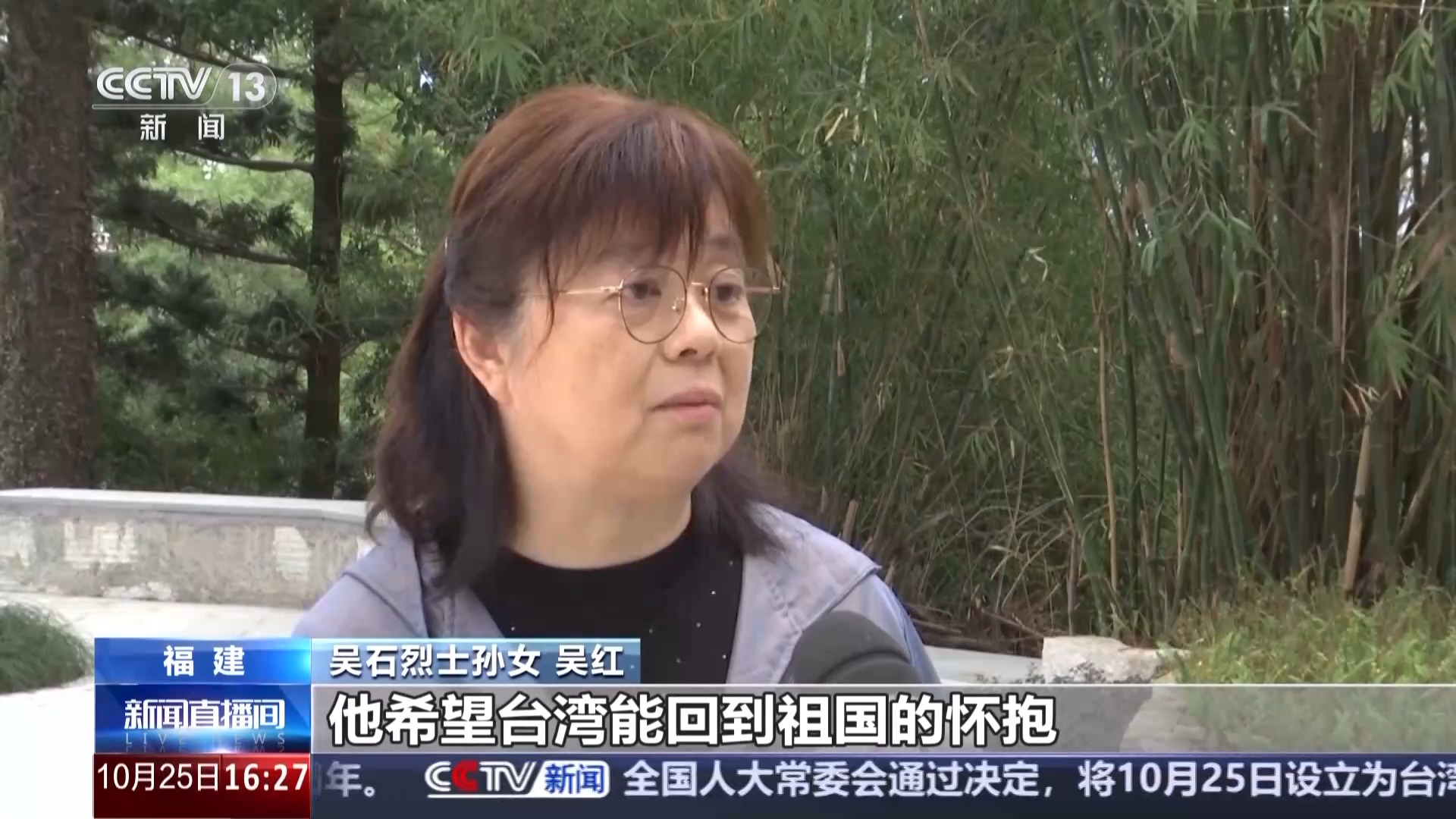 吴石烈士孙女 吴红:祖辈那一辈,那时候都是为了做的一件事而牺牲的,并且是同时牺牲,所以我们见了以后,感情也是觉得特别深。