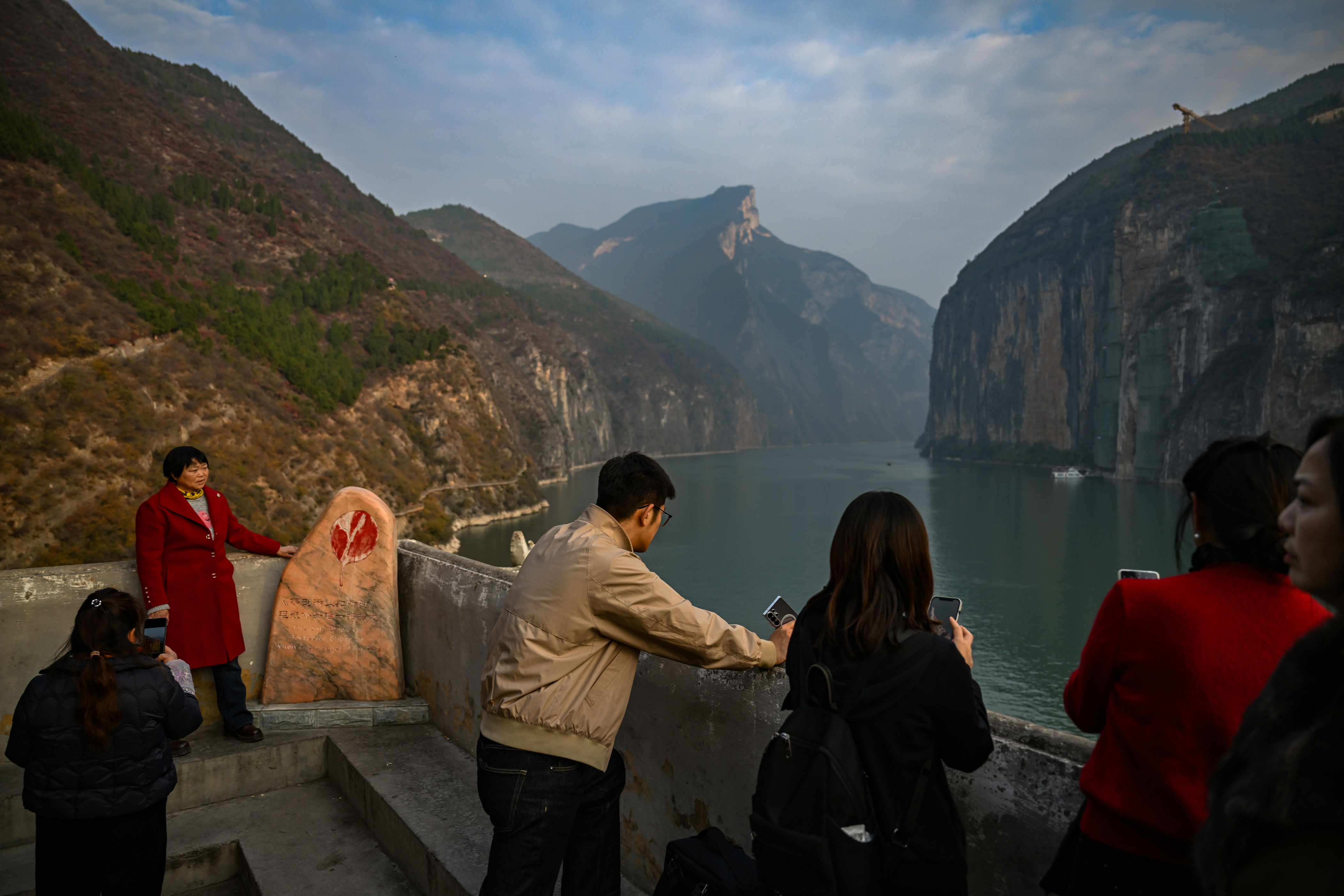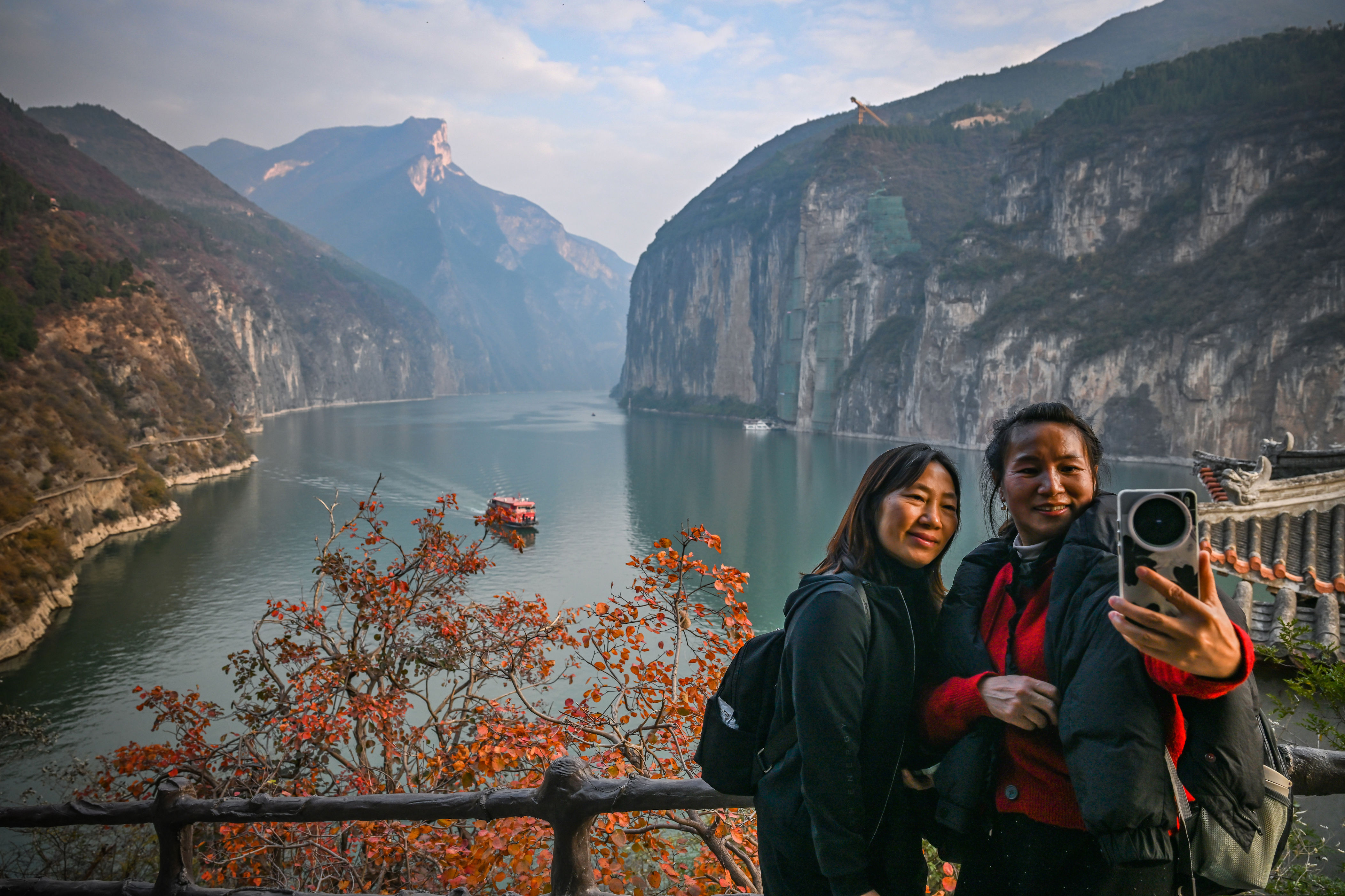 ▲12月18日,奉节瞿塘峡,游客正在拍照打卡。首席记者 龙帆 摄